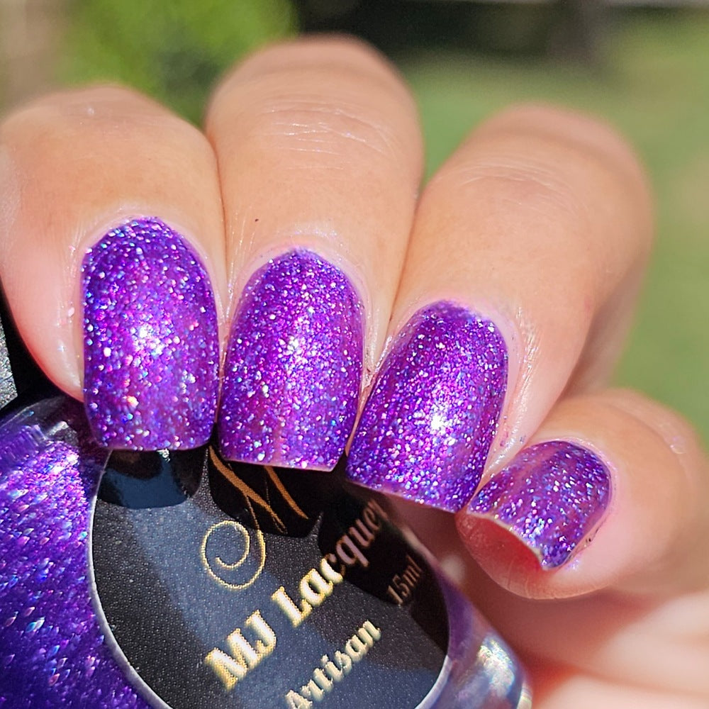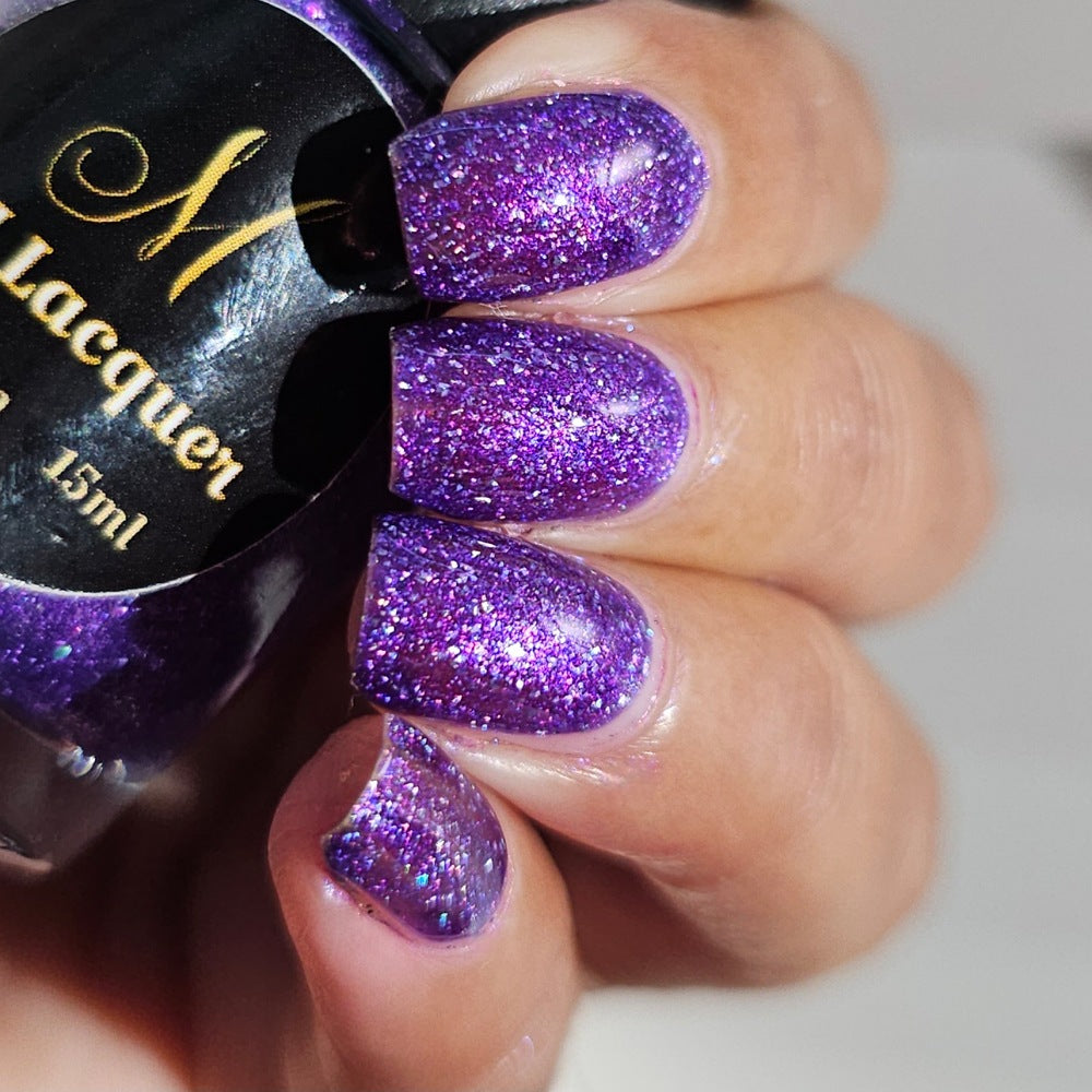 A  purple shade swirled with purple aurora shimmer and holographic flakes for an overall mystical finish.